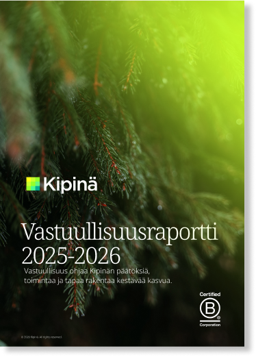 Vastuullisuusraporttimme on suunnattu ensisijaisesti Kipinä Softwaren asiakkaille ja yhteistyökumppaneille. Sen tarkoituksena on kuvata avoimesti, miten vastuullisuus näkyy Kipinän tavassa tuottaa digitaalisia palveluita, johtaa asiantuntijatyötä ja tehdä liiketoimintaa pitkäjänteisesti.